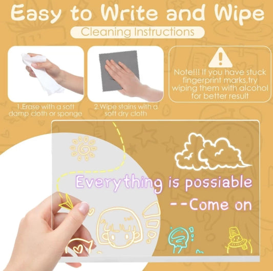 3d Acrylic LED Message Board, LED Message Board With Pen(30 x 20cm) Table Lamp (30 cm, Transparent)